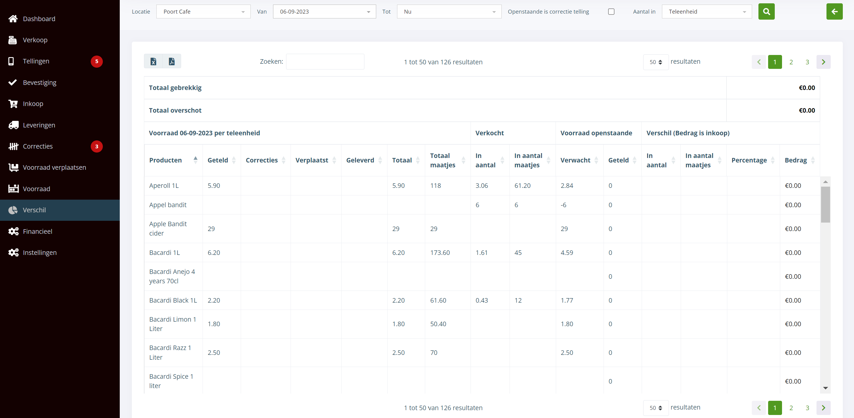 Door middel van voorraad, bestellingen en verkoop met elkaar te vergelijken ontstaat er een verschillenlijst. Inzichtelijk hierin is hoe veel waste er per product is.